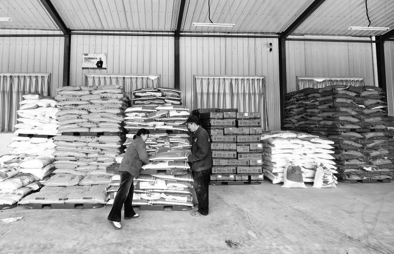 群众在耀州区关庄镇农事综合服务中心精心挑选农资。 董唯韦 摄