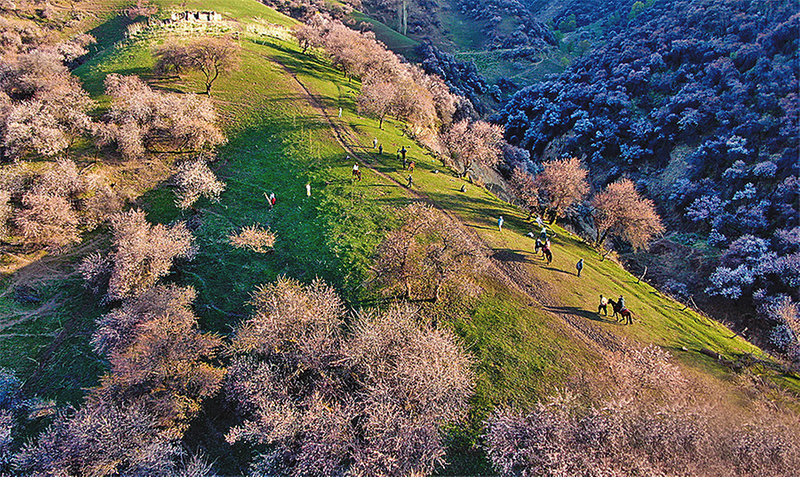 春到那拉提 杏花漫山谷