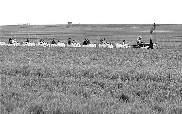 4 月 12日,秦岭脚下西安市长安区王曲街道江兆村,连片的麦田绿意盎然,麦浪随风起伏。观光小火车穿行其间,与麦田、远山相映成趣。