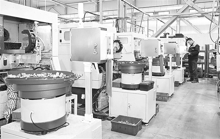 近日,位于礼泉县的陕西众合昌达机电科技有限公司车间,工人在忙生产。近年来,礼泉县构建现代化产业体系,着力培育产业链条,初步形成以高端装备制造、食品加工、循环经济为主导,以新型材料、文化旅游、现代医药及医疗器械、新能源、数字经济、输变电装备等为补充的产业链发展格局。