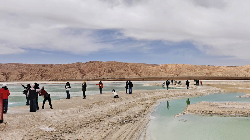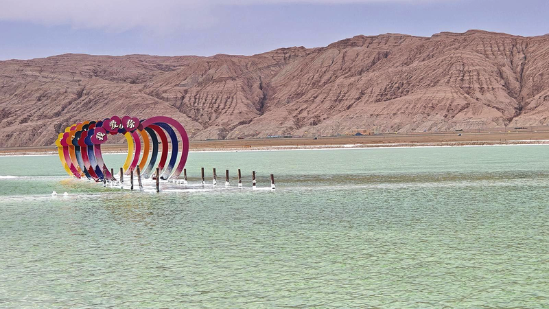 这是一处工业与自然携手共创的奇观。作为硫酸镁亚型盐湖,湖底沉积着5米至9.68米厚的石盐层,富含锂、钾、芒硝等资源。多年开采留下的盐池,因卤水矿物质含量不同,在阳光照射下幻化出翠绿、湛蓝、青碧等斑斓色彩,宛如上帝打翻的调色盘。东侧,英雄岭丹霞倒映湖中,红岩碧水相映成趣;南望,昆仑雪山与湖面融为一体,天地难分。从昔日的盐湖采矿区到如今的“宝藏境”,这片戈壁深处的绝色,正静待更多目光的凝视。冉志敏 摄