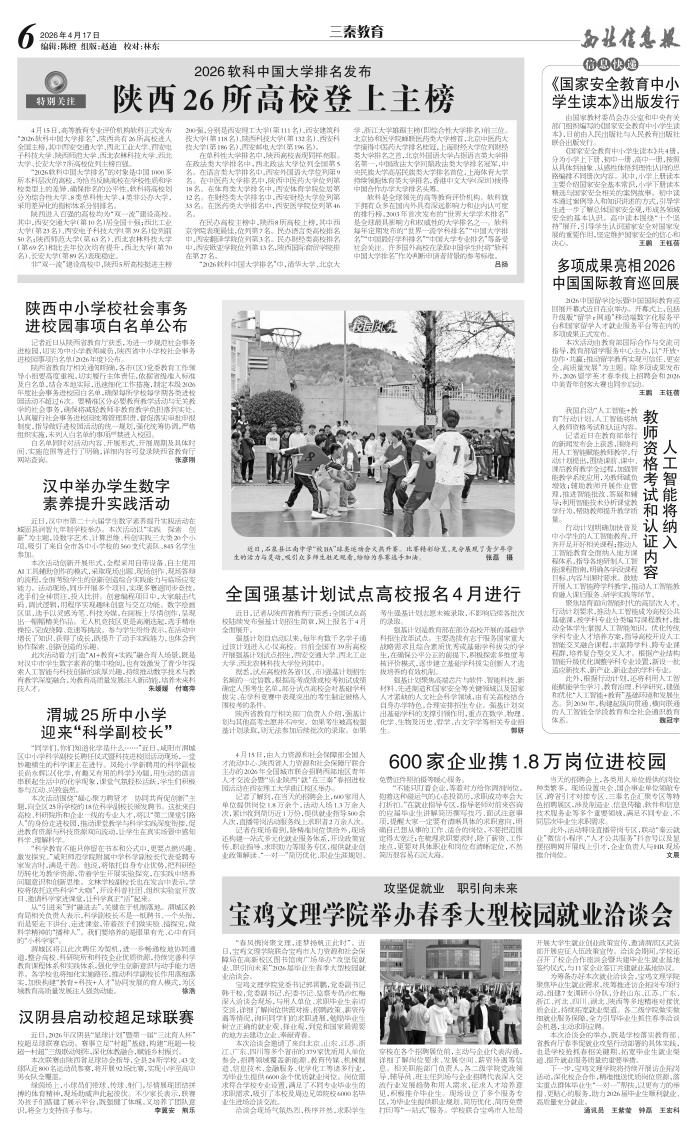 4月15日,由人力资源和社会保障部全国人才流动中心、陕西省人力资源和社会保障厅联合主办的2026年全国城市联合招聘西部地区青年人才交流会暨“乐业陕西‘就’在三秦”春招进校园活动在西安理工大学曲江校区举办。