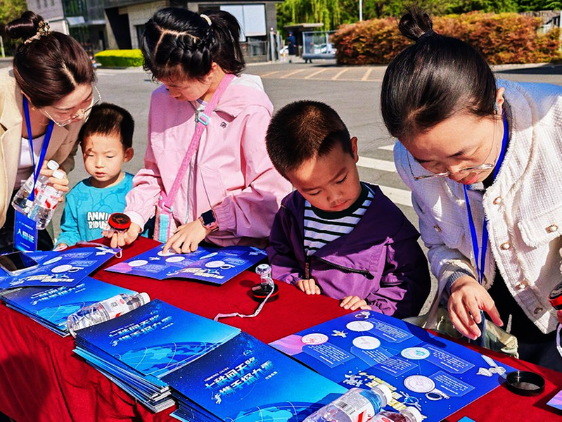 卫星模型拼接区围满了专注的大小“工程师”。在这里,参与者可以亲手组装卫星模型,从零件到整体,一步步了解卫星的结构与原理。不少家长表示:“这样的动手环节孩子玩得开心,学得更扎实!”一旁的手工作品展览区则充满童趣与温情——所有展品均由西安分院幼儿园小朋友精心制作。火箭、星球、飞船……稚嫩的笔触和天马行空的想象,描绘出孩子们心中最纯真的航天梦,引得参观者纷纷驻足点赞。
