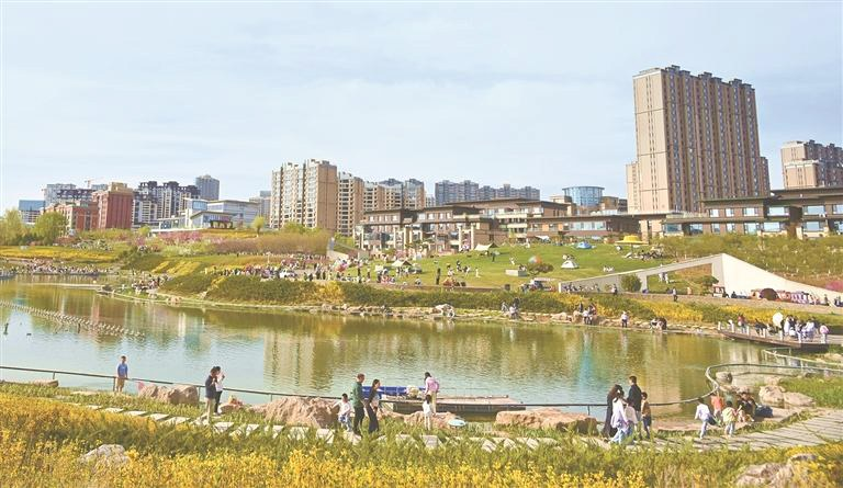 图为市民游客在延安新区鲁艺生态公园休闲娱乐。 王德荣 摄