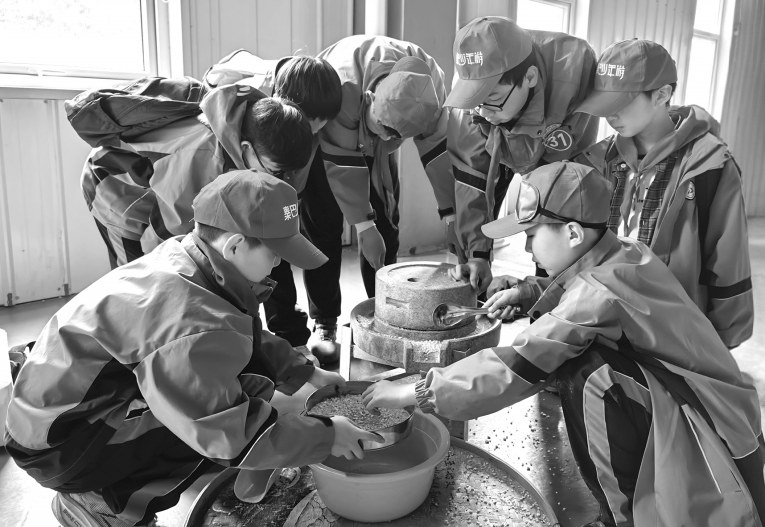 研学的同学体验用石磨将玉米粒加工成玉米面的过程。春风送暖,草长莺飞。近日,平利县盛丰源现代农业劳动教育研学实践基地迎来了来自各地的研学团队。据了解,该基地依托交通便利、环境优美等得天独厚的自然条件,通过农事体验、农产品分拣包装、野营拓展、采茶制茶、毛绒玩具制作、中药材辨识种植等研学资源,多点联动开展主题研学实践活动。研学中,孩子们聆听农作物从种到收的过程,体验粮食加工、农产品分拣包装、茶叶采摘、制茶等项目,在实践中感悟“谁知盘中餐,粒粒皆辛苦”的不易,同时也培养了团队协作能力。在学习、体验中推动“农业+文旅+研学”深度融合,让研学课堂走进自然、走进乡村、走进历史,将平利的生态之美、文化之韵、产业之兴转化为可感可学的实践课堂。既丰富了青少年校外教育内容,同时为县域文旅提质与乡村振兴注入新活力。本报记者 陈涛