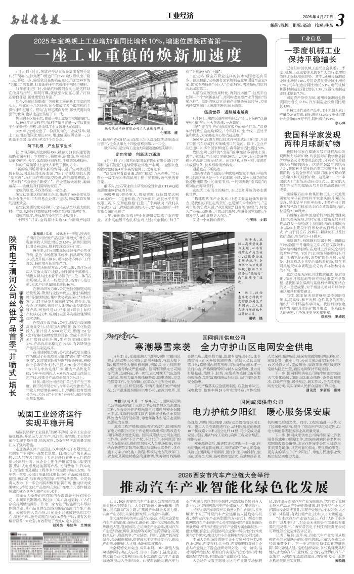 陕西电子渭河公司丝锥产品首季“井喷式”增长