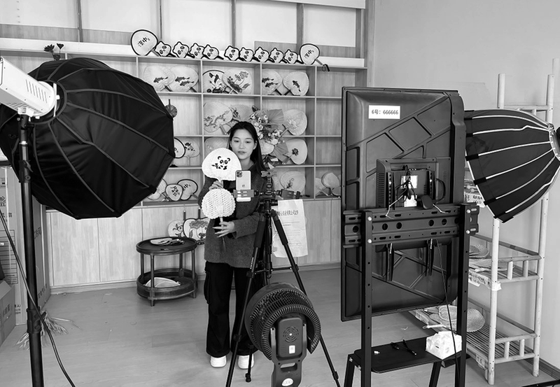 近日,在汉中市南郑区黄官镇汉中藤编良顺新媒体运营中心,本地主播通过直播向网友介绍手工藤扇的制作工艺与使用特点。非遗产品通过网络走出乡村的同时,也为周边村民提供了家门口的就业岗位。